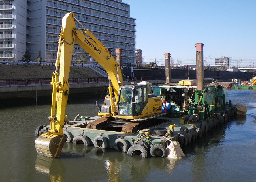 水陸両用バックホウ 極東建設株式会社 水中施工のスペシャリスト集団